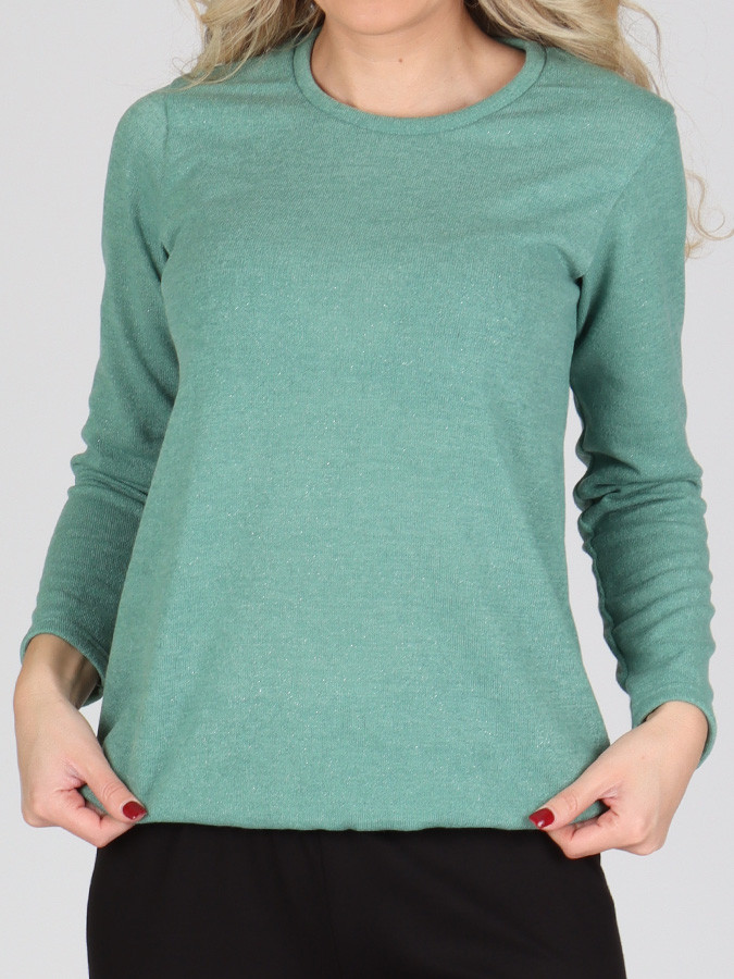 Dámska blúzka RUNA je ideálna pre chladnejšie dni. Je vyrobená z príjemného úpletu s trblietavou nitkou, ktorá dodá blúzke luxusný vzhľad. Má klasický rovný strih, dlhý rukáv, okrúhly výstrih a praktické zakončenie blúzky do gumy.