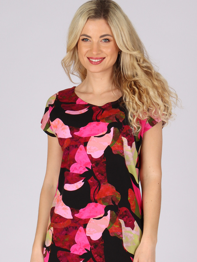 Každá žena sa rada oblieka podľa aktuálnej nálady! Úžasná farebná kombinácia týchto šiat strčí konzervatizmus do vrecka, vynikne v nich jedinečnosť a osobný štýl každej ženy. Dámske šaty majú mierne priliehavý strih s okrúhlym výstrihom. Vďaka elastanu sú tvarovo stabilné.