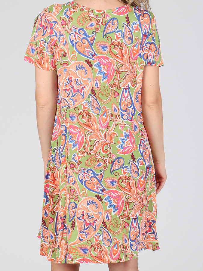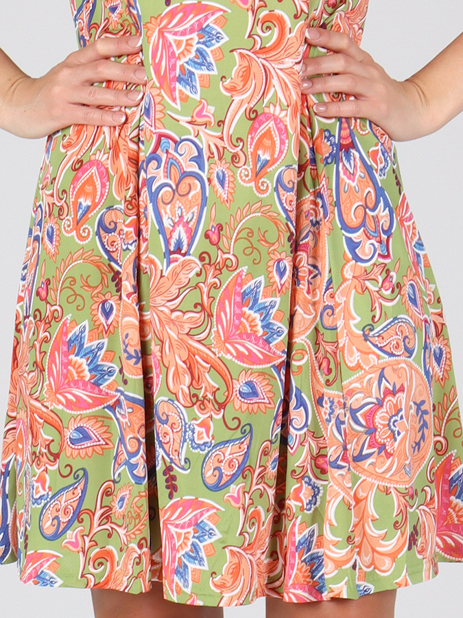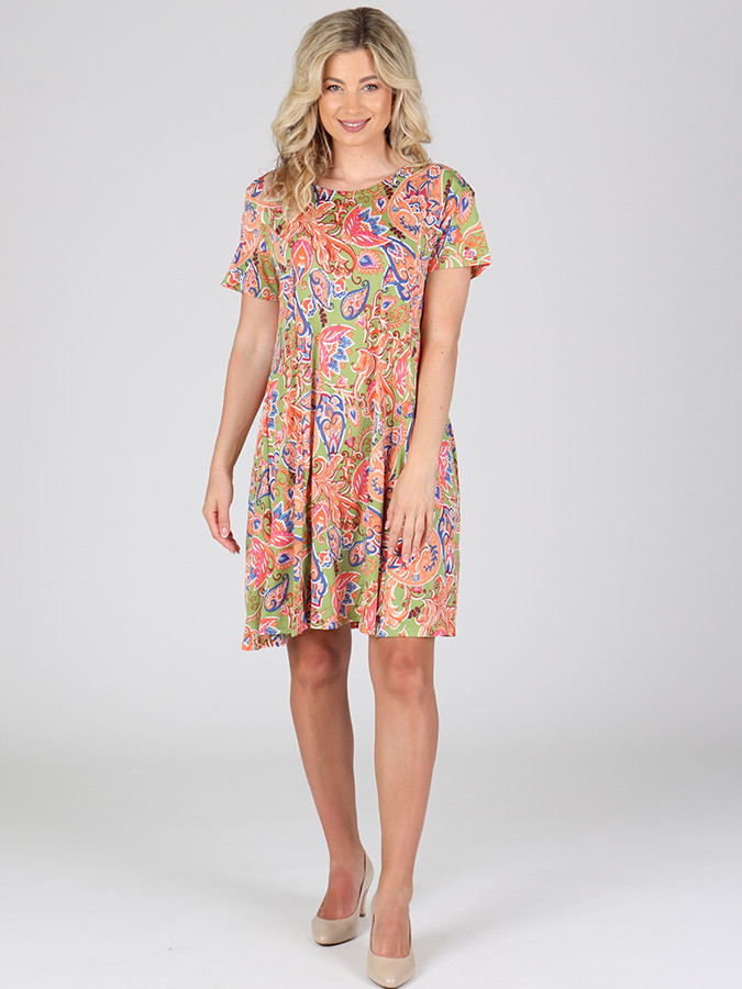 Štýlové a elegantné dámske letné šaty s výraznou potlačou, ktoré zaujmú na prvý pohľad. Sú ušité z ľahkej a splývavej látky, ktorá je ideálna do horúcich letných dní. Vďaka príjemnému materiálu sa budete cítiť komfortne a zároveň nádherne žensky.