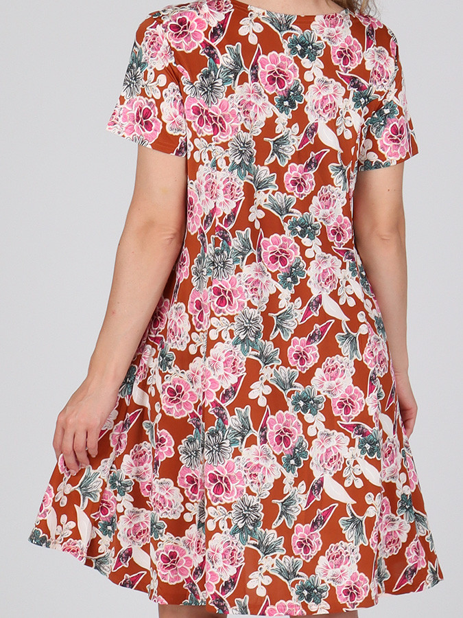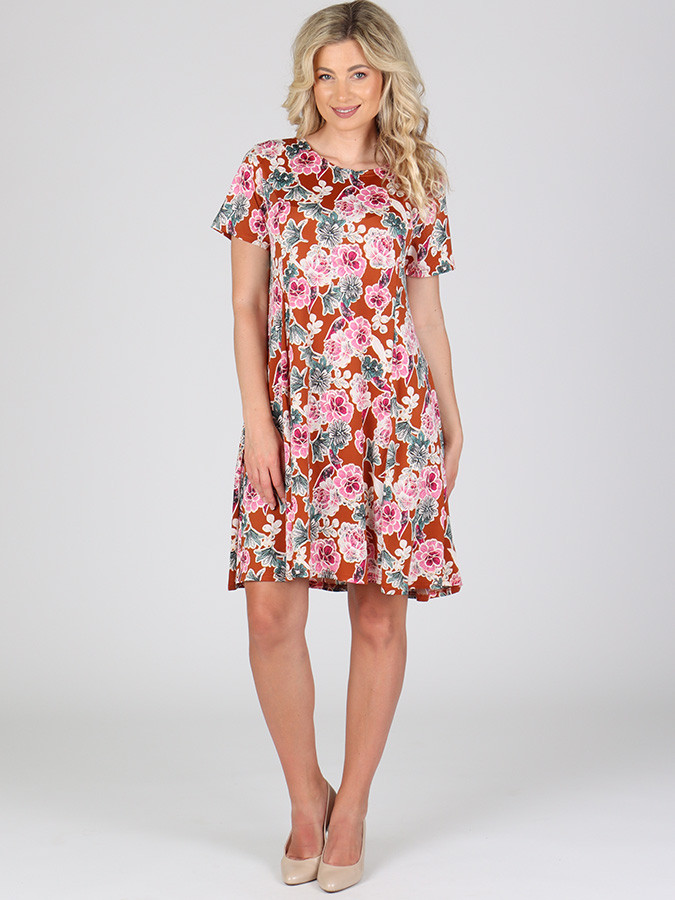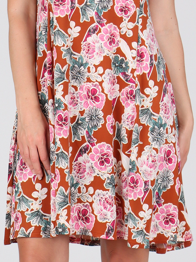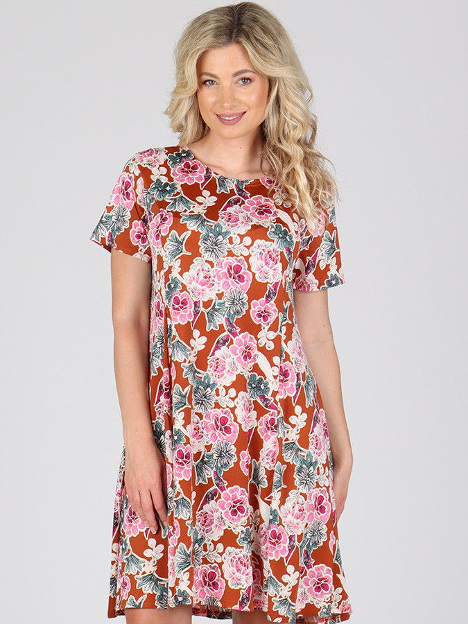 Štýlové a elegantné dámske letné šaty s výraznou potlačou, ktoré zaujmú na prvý pohľad. Sú ušité z ľahkej a splývavej látky, ktorá je ideálna do horúcich letných dní. Vďaka príjemnému materiálu sa budete cítiť komfortne a zároveň nádherne žensky.
