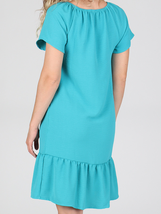 Objavte štýlové dámske šaty ZEIDA s volánom, ktoré spájajú eleganciu a maximálne pohodlie. Vďaka strihu do A krásne lichotia postave a poskytujú voľnosť pohybu, čo z nich robí ideálnu voľbu pre každodenné nosenie aj letné spoločenské udalosti. Šaty majú výstrih do gumičky a volán, ktorý dodáva outfitu romantický a ženský vzhľad. Tento model má krátke spadnuté rukávy a dĺžku ku kolenám, takže pôsobí decentne a zároveň vzdušne.