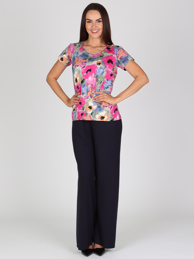 Klasické tričko RUTH s krátkym rukávom vás svojim vzorom očarí. Je vyrobené zo vzdušnej viskozy, preto sa príjemne nosí a perfektne sedí. Toto tričko si zamilujete.
