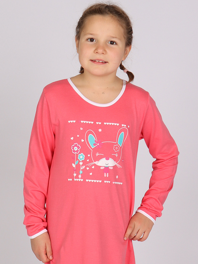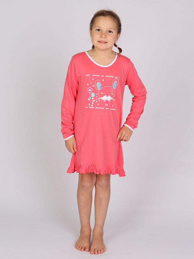Nádherná nočná košieľka pre dievčatká s veselou potlačou na korálovom podklade! Košieľka má spodný okraj zakončený volánikom a to robí z tejto nočnej košieľky jedinečný kúsok. Košieľka je z čistej bavlny, vďaka ktorej je priam rozprávka v nej zaspávať.