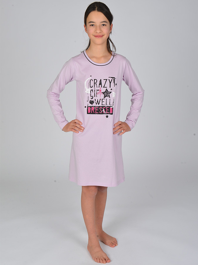 Klasická nočná košieľka pre dievčatká s potlačou na fialkovom podklade! Košieľka má dlhé rukávy a je z čistej bavlny, vďaka ktorej je priam rozprávka v nej zaspávať.
