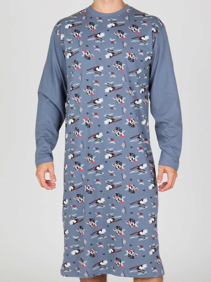 Pánsku nočnú košeľu P NORMAN si zamilujú všetci milovníci áut a pretekania. Dlhý rukáv, dĺžka pod kolená a príjemný materiál zaistí pri spánku potrebné pohodlie. Nočná košeľa skvele poslúži aj ako darček.